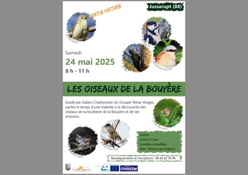 Une sortie ornithologique est prévue le samedi 24 mai sur le site Natura 2000 de la Tourbière de Jussarupt. N'hésitez pas à vous inscrire auprès de Christèle Guyennot au 06 64 42 78 49 😀